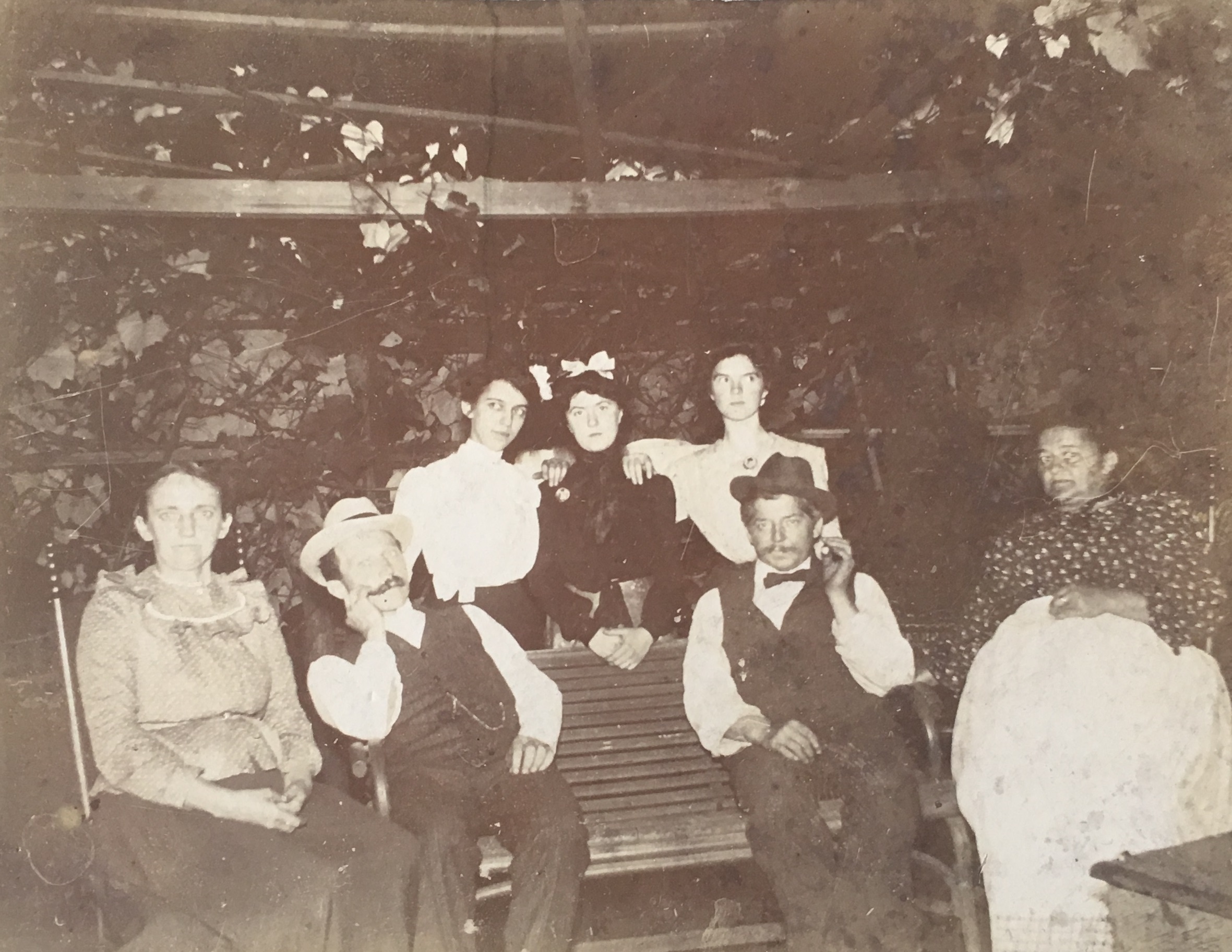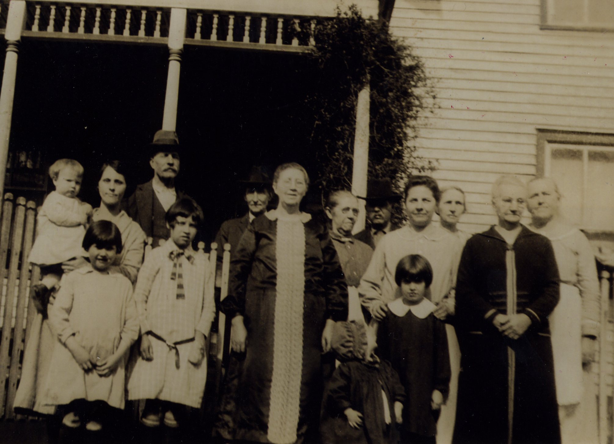 A family gathering, c. late 1920s or early 1930s. Julia is at the far right, in back. Tazwell is also in back, third from the right.